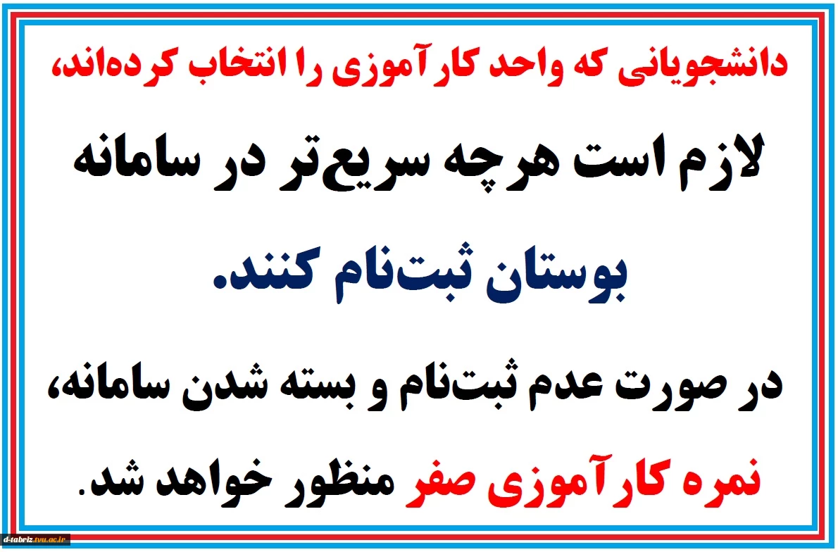 واحد کارآموزی- ثبت نام در سامانه بوستان 2